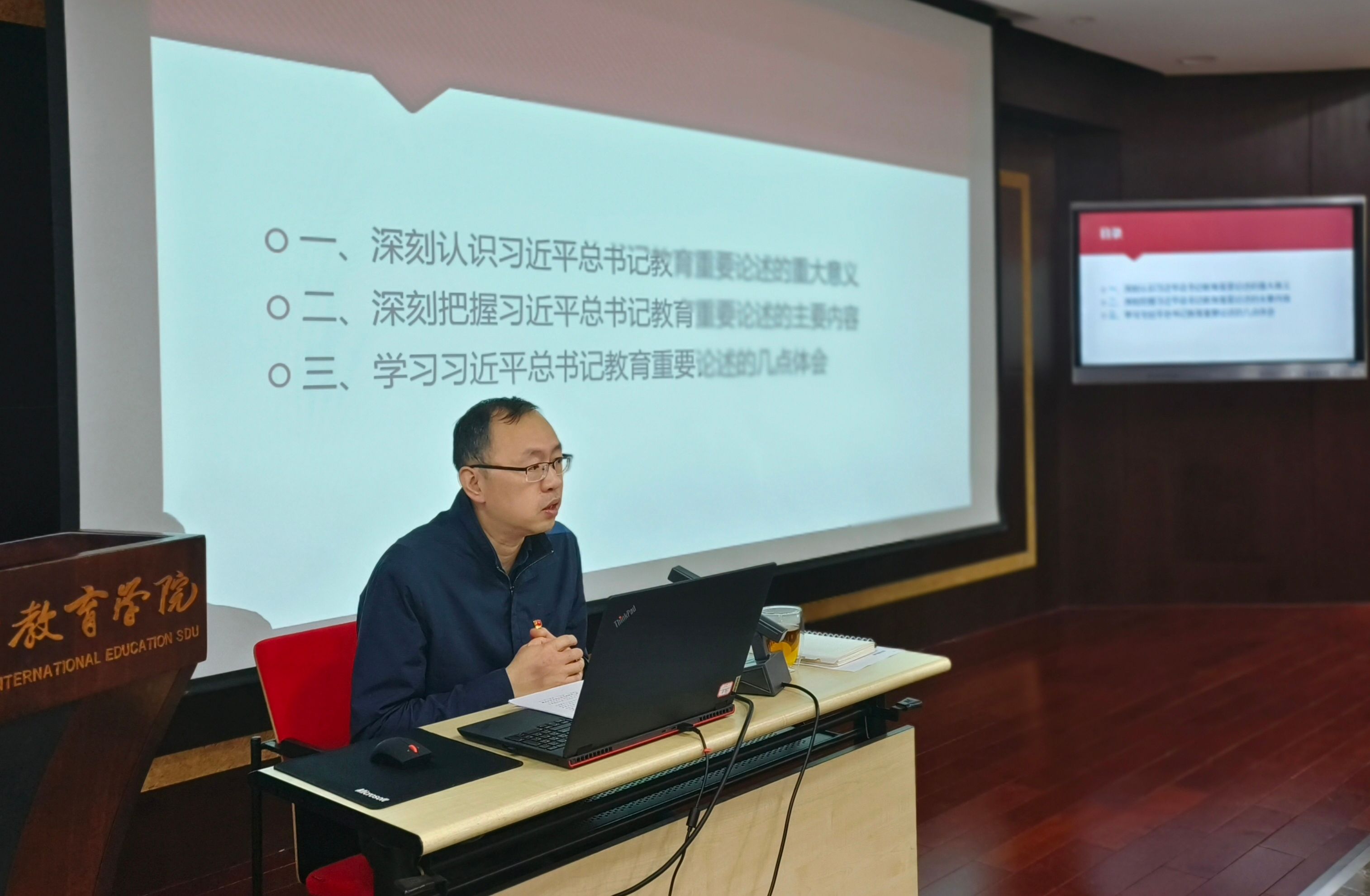 姬锐从习近平总书记关于教育的重要论述的重大意义和最新成果为切入点,结合新时代我国教育事业发展的战略定位、具体数据进行了深入解读,并从宏观和微观层面深入浅出、言简意赅地讲解了习近平新时代中国特色社会主义教育观的深刻内涵和实践要求,为学院师生深刻全面深入理解教育强国建设的意义、教育强国战略的内涵和实施提供了很好的思路,也为学院教师在教学实践中如何贯彻落实习近平总书记的教育论述提供了具体指导。