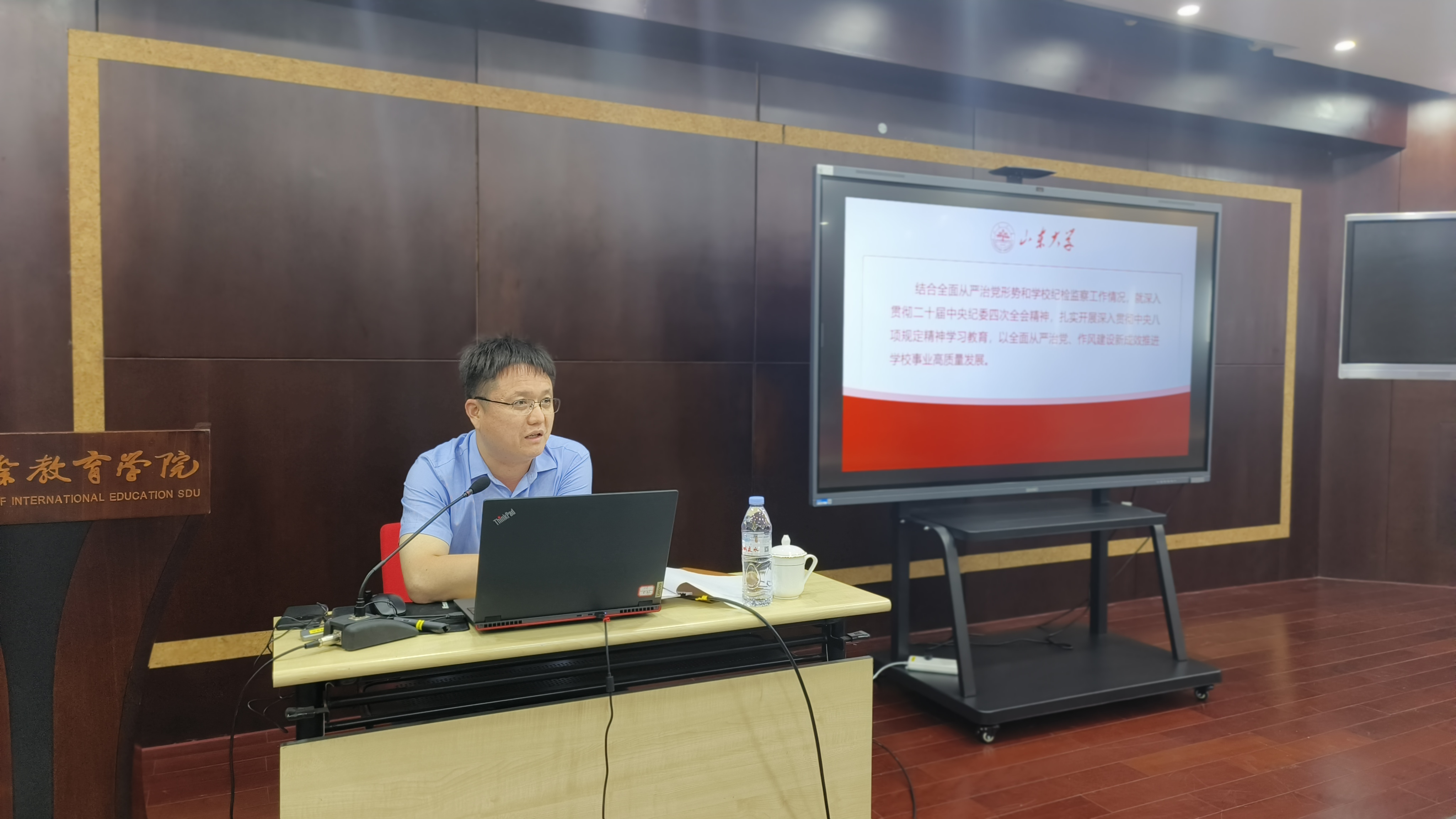 纪检监察机构第二纪检监察室主任牛玉国以“做‘强党性、正作风、守纪律’山大人”为主题,为师生党员、入党积极分子等讲授一堂警示教育课。本次讲座由学院党委书记姬锐主持。