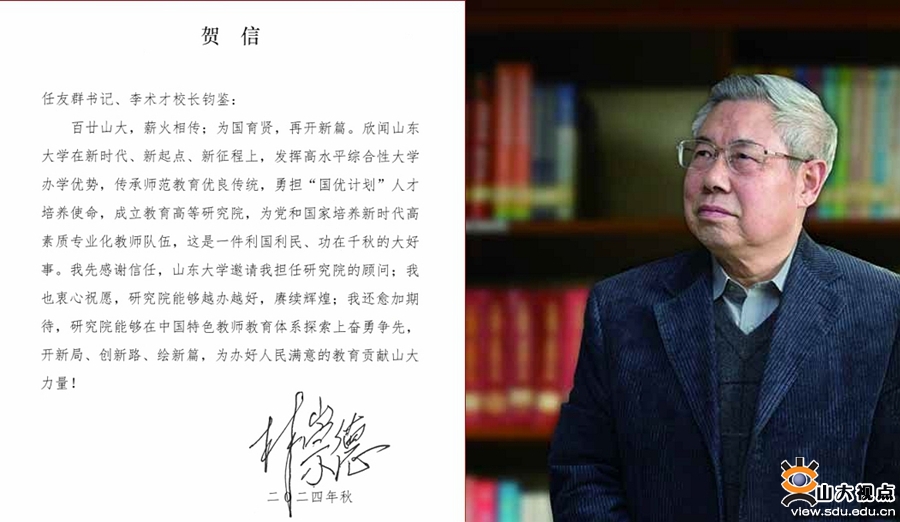 ,是全面贯彻落实全国教育大会精神、开展教育家精神铸魂强师行动的生动实践。学校将聚焦推动建构中国教育学自主知识体系,扎实推进教育强国理论研究;发挥学科门类齐全和实践锻炼机会丰富的综合优势,着力打造大中小衔接的拔尖创新人才贯通培养模式;有机融入新时代立德树人工程,大力传承和弘扬人文精神;强化国际教育交流合作,深度参与全球教育治理,在新起点上奋力谱写“强国建设、山大有为”的时代答卷。