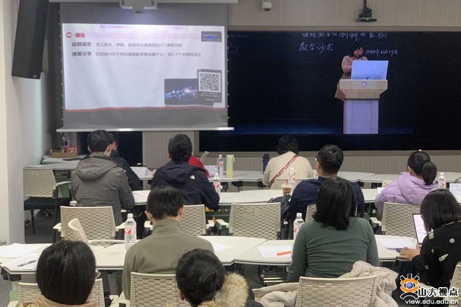 12月19日,“AI时代课程教学的创新与重构”教学沙龙通过全息教室系统举行,来自一校三地60个教学单位的百名教师参加。
