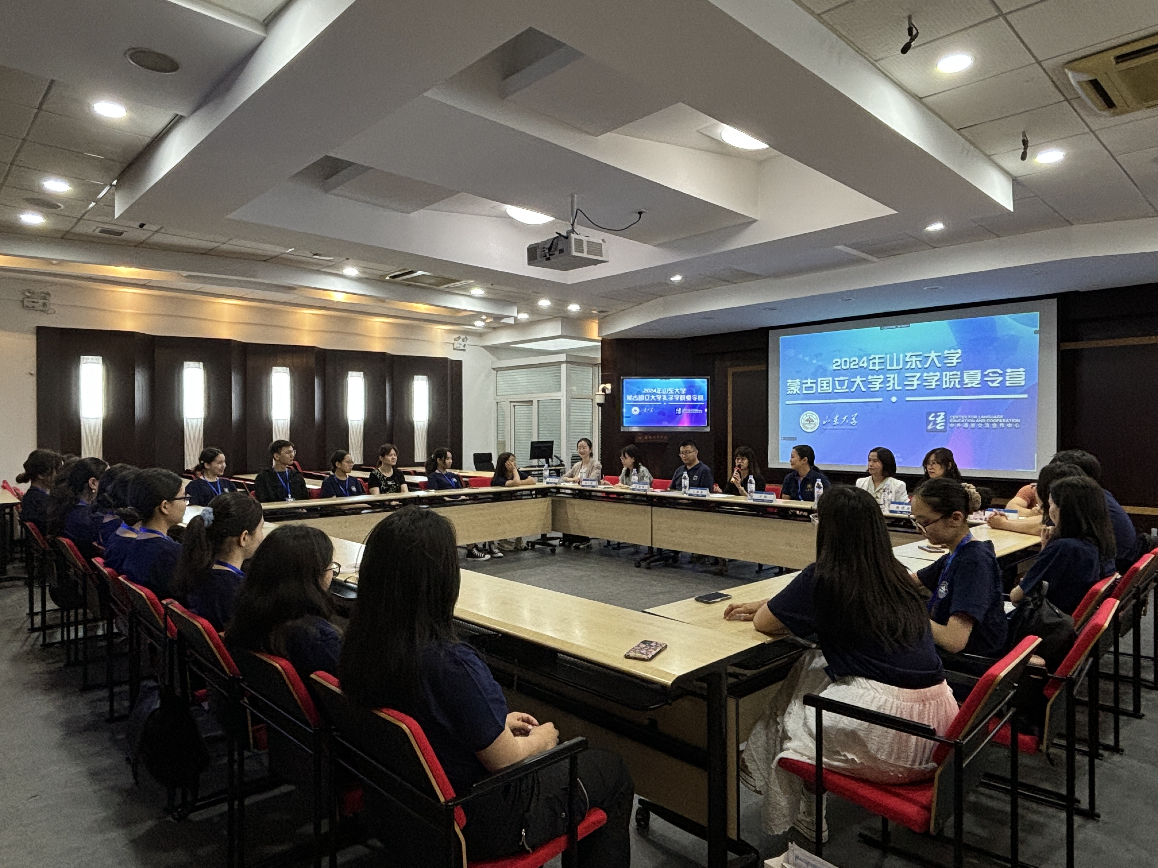 举办。国际教育学院党委副书记王璐璐、蒙古国立大学孔子学院蒙方领队吉雅老师出席开营仪式并致辞,国际中文教育办公室张晓辉老师出席活动。来自蒙古国立大学孔子学院的21名师生学员参加本次夏令营。