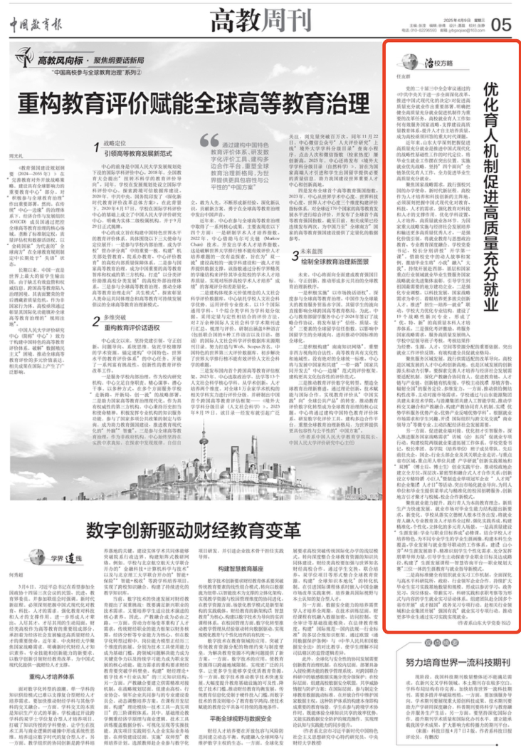 党的二十届三中全会审议通过的《中共中央关于进一步全面深化改革、推进中国式现代化的决定》对促进高质量充分就业作出重要部署,明确把健全高质量充分就业促进机制作为重要的改革任务。高校就业育人工作如何有效服务国家战略、支撑建设高质量教育体系、提升人才自主培养质量,成为高校亟须回答的重大时代课题。