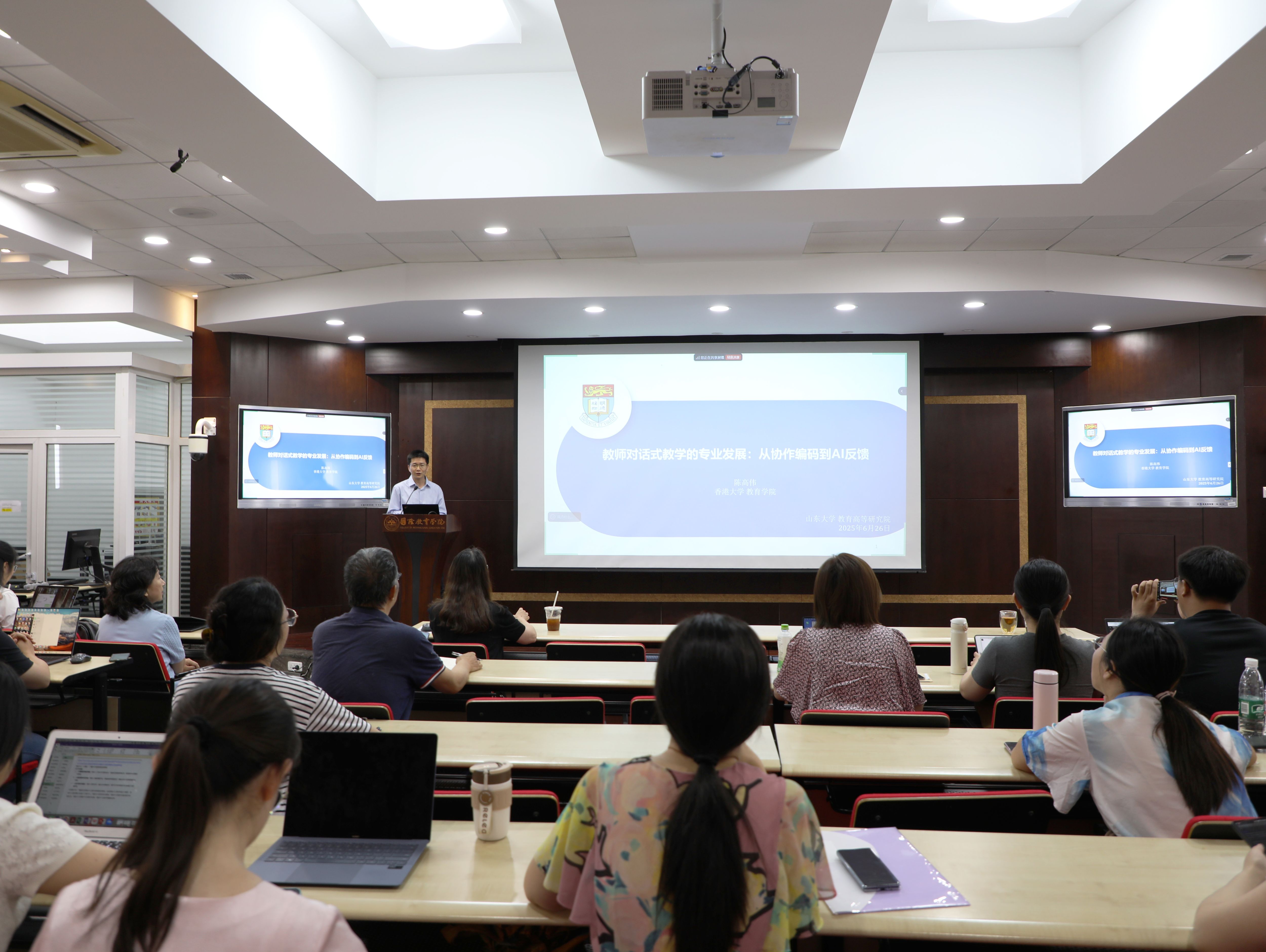 6月26日下午,香港大学教育学院田家炳基金杰出青年教授,数学、科学与科技系主任陈高伟作客奈飞影视 ,为奈飞影视 师生作“教师对话式教学的专业发展:从协作编码到AI反馈”专题讲座。奈飞影视 院长徐斌艳主持讲座。陈高伟教授首先就课堂对话展开讨论,认为对话式教学是提升课堂互动质量与学生高阶思维的关键,但教师在实践中常面临挑战。他分享了从事的两项实证研究,探索促进教师对话式教学专业发展的有效途径。研究一聚...