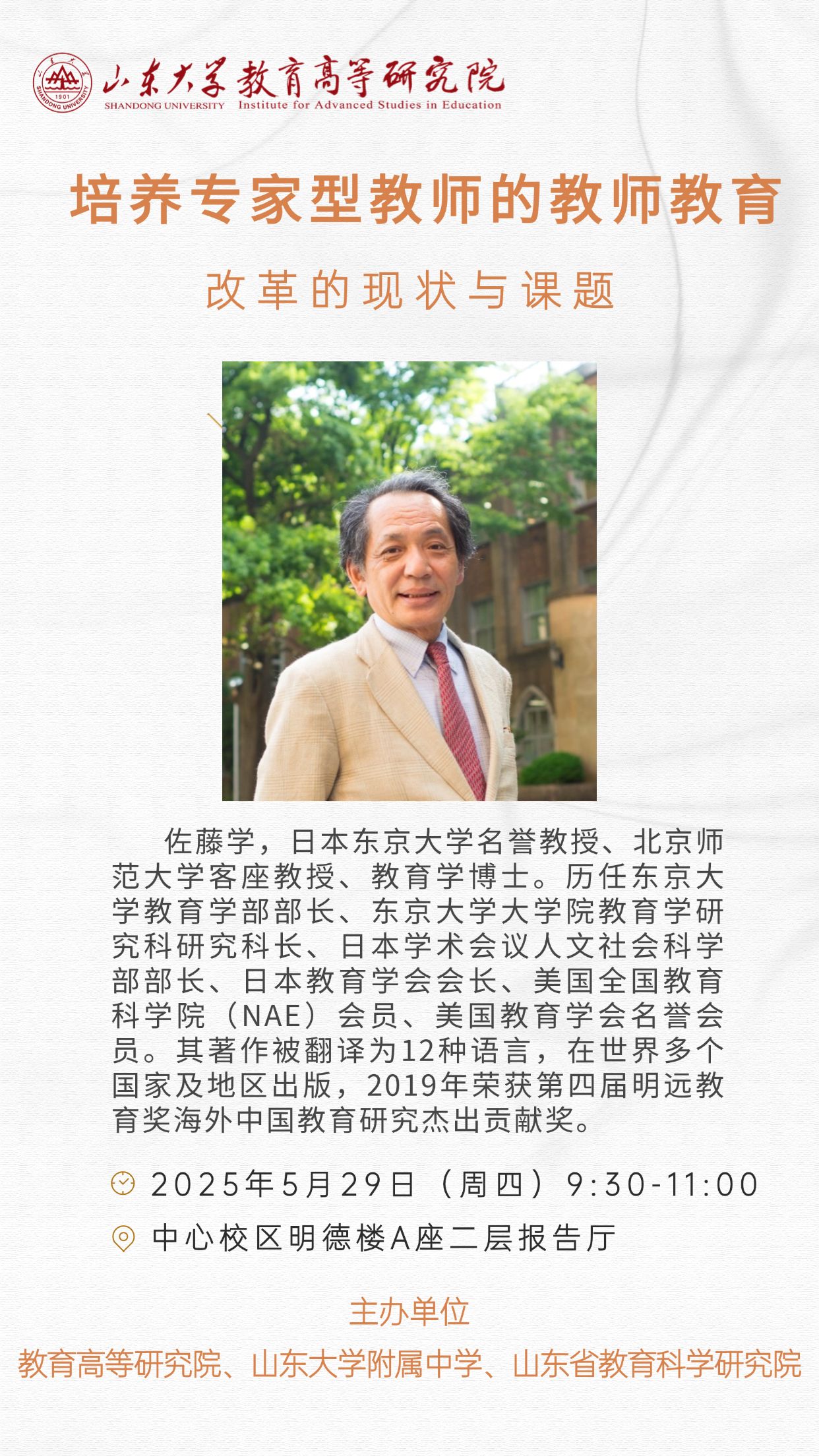 主讲人 佐藤学,日本东京大学名誉教授、北京师范大学客座教授 讲座时间 2025年5月29日(周四)9:30